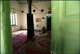 Hussein Egut, imam of the Turkish community, praying in the mosque....