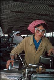 AFGHANISTAN. Kabul. Female worker at the Jangalak mechanical factory. Women were employed after the communist takeover. 1986.