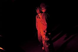 Cleaning a blood stained helicopter. Medevac. 1159th Medical Company flies Black Hawks evacuating injured US soldiers, Iraqi forces and civilians to the FOB Speicher Hospital and Balad Air Force Hospital.