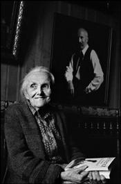 FRANCE. Burgundy region. Côte d'Or department. City of Commarin. Henri VINCENOT's mother under a portrait of her son (painter, writer and sculptor).