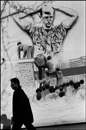 IRAN. Tehran. Outside the confiscated US Embassy, a giant hand painted poster celebrates the taking hostage of diplomats and Marines, on November 4, 1979.