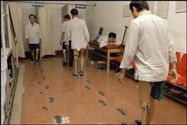 VIETNAM. January 2005. Ho Chi Minh-City. International Red Cross Rehabilitation Center. Vietnamese war veterans learn how to walk with their artificial legs.