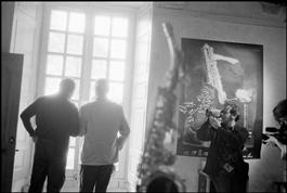 FRANCE. Pays-de-la-Loire region. Sarthe departement. Le Mans. Europa Jazz Festival, 18th edition. Abbaye de l'Epau, Route de Changé. From left to right : a back view of US jazz musician Joe McPHEE (saxophones, trumpet) and a back view of French jazz musician Daunik LAZRO (saxophones). Backstage, before entering the stage for the concert, second concert of the afternoon. DAUNIK LAZRO QUINTET. Sunday, April 27th 1997.