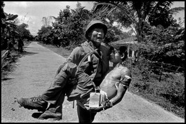 VIETNAM (South). North of Saigon, on Route 13. 1972. A soldier wounded in a fight with the Vietcong is being evacuated. His unit attempts to retake a village occupied briefly by the Vietcong and the NVA (North Vietnamese Army).