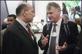 Shafik Gabr speaking with Michael Elliott of Time Magazine.