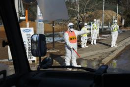 During the press trip with the officials of Japan Atomic Energy Agency [JAEA] and twenty journalists to a decontamination site at Odaka Ward Kanafusa Junior High School [MINAMI SOMA] on January 14th, 2012. It was the fourth official press visit inside the 20km no-entry zone organized by JAEA since November 2011.