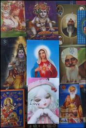 INDIA. 5. Punjab. Amritsar. Images of the Christian Virgin Mary next to Hindu deities and Sikh gurus.