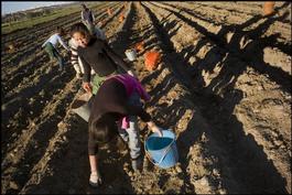 Between Bokonbaeva and Kyzyl Suu (south of Issyk Kul lake). Gathering potatoes.