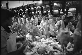 France. Brittany. North Finistere. Village of Guerlesquin. An industrial slaughterhouse of chiken, Tilly Company. Tuesday 4th September, 1979.
