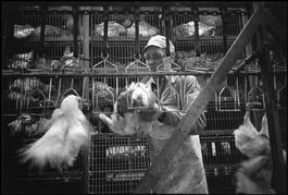 France. Brittany. North Finistere. Village of Guerlesquin. An industrial slaughterhouse of chiken, Tilly Company. Tuesday 4th September, 1979.
