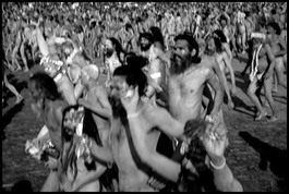 INDIA. 5. Uttar Pradesh. Allahabad. The Kumbh Mela's most auspicious day, Feb. 10, 2013. Naga sanyassis hurry towards the sangam to take their ritual bath.