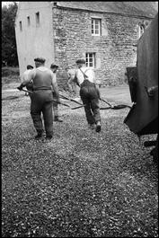 FRANCE. Brittany. Morbihan department. Village of Malansac. La ville Bleher. Tarring a farmyard. Friday, 21 July 1972.