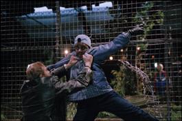 FRANCE. Paris. Making of the film 'Le Dernier Caravanserail' by the Theatre Du Soleil. A scene from 'Sangatte' Igor SKREBLIN. and Eve DOE-BRUCE.
