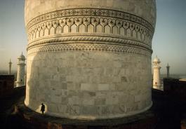 INDIA. Uttar Pradesh. The Taj Mahal. The main dome rises from a straight stem so it is seen in its entirety from the platform and gardens.