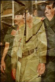 IRAQ. Bagdad. After the American invasion, a public portrait of President Saddam HUSSEIN is defaced.