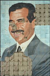 IRAQ. Bagdad. After the American invasion, a public portrait of President Saddam HUSSEIN is defaced.