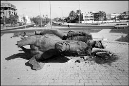 IRAQ. Baghdad. A equestrian statue of President Saddam HUSSEIN thrown down by his own people after US troops occupied the capital.