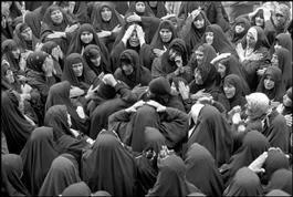 IRAQ. Karbala. Shia women, wearing the islamic veil, beat their...