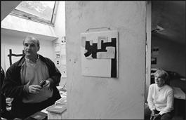 Spanish sculptor Eduardo CHILLIDA's son and wife in his studio.
