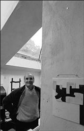 Spanish sculptor Eduardo CHILLIDA's son standing in his studio.