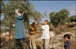 West Bank. Village of Yanoon. Palestinian olive harvest with the help of Israeli peace activists Ta'Yush (Common living). Their presence protects the harvesters against attacks by Israelis from the nearby settlement of Itamar.