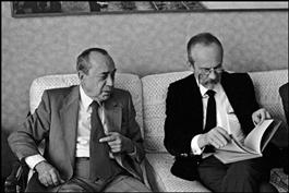 ITALY. Milan. Italian writer Leonardo SCIASCIA with Gianfranco GRECHI