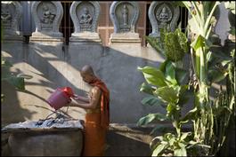CAMBODIA. Phnom Penh. Bhuddist monk in Wat Ounalom.
