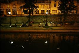 FRANCE. Paris. 10th arrondissement. Homeless people living in tents along the Canal Saint Martin.