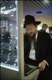 Berel Lazar (Chief Rabbi of the Russian Federation) checking his email.