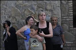 GEORGIA. Gori. August 13, 2008. People gathering at the church, one day after the city was bombed by Russian airforce.