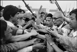 A government representative, YAN Mingfu, member of the Central Committe's Secretariat, who came to the Square to give a speech in which he implored the students to go back to their schools. He is protected by student marshals.
