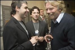 Larry Page (Co-Founder and President, Products, Google Inc. USA), Sergey Brin (Co-Founder and President, Technology, Google Inc., USA) and Sir Richard Branson (Founder and Chairman, Virgin Group Ltd, UK) at the Google party in the Kirschner Museum.
