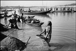 BANGLADESH. Jaflgong. A teenage girl washes a heavy load of stones, to be used for making cement, in the river Piay.