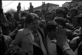 The leader of the Democratic party Sali Berisha during the Elections campain. 1992.