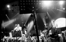 Wednesday, August 7th, 2002. 25th anniversary night. Standing, American jazz musician Wynton MARSALIS (trumpet). On the right, over the rostrum, American jazz musician Wessel "Warmdaddy" ANDERSON (saxophone).