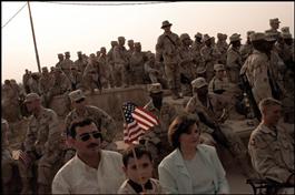 IRAQ. Mossul. July, 2003. US troops posted in front of Saddam Hussein's Palace celebrate the 4th of July, a few loyal locals are invited to the ceremony.