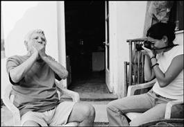 On the left, the Greek film director Alexis DAMIANOS playing harmonica. On the right, the Greek photographer Olga STEFATOU.