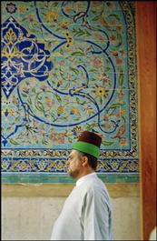 IRAQ. Najaf. A guardian, wearing the traditional islamic dress at the shrine of Imam ALI, founder of the Shia sect of Islam.