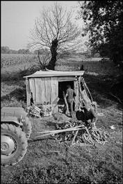 FRANCE. Brittany. Morbihan. Malansac Village. La Ville Bleher. The farm Dauphas. Cutting and storage timber. Tuesday 03rd October 1972.