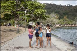 TRINIDAD. 2014. Enjoying the last sun at the Chaguaramas boardwalk,...
