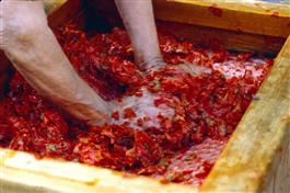 ITALY , Sicily,Bagheria: Preparation of tomato sauce.
