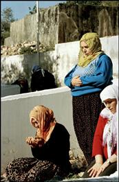 TURKEY. Near the town of Tarsus. December 2002. Women pray outside...