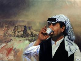 The Saddam Hussein Arts Center comissioned several dozen of portraits on occasion of the Referendum for Saddam Hussein ( results 100% participation and 100% YES votes ) from contemporary Iraqi artists.