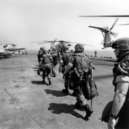 US NAVY. Balkans War. USS KEARSARGE. The elite Marine Corps specialised...