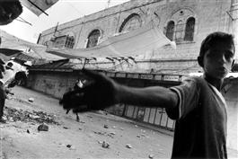 WEST BANK. Hebron. 2000. Kids throwing stones during the Intifada....