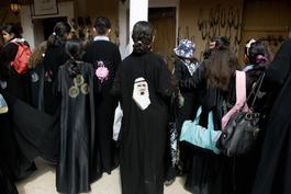 SAUDI ARABIA. Riyadh. March 16, 2009. School girls crowd around...