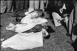 INDIA. Bhopal. 1984. A man carries the body of his dead wife...