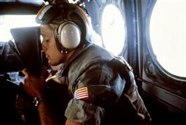 LEBANON. Beirut. October, 1983. A U.S. Marine in a helicopter....