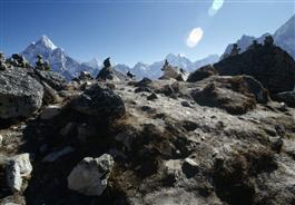 Nepal. Everest base camp trek. Monuments to sherpas and porters...