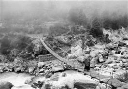 Nepal. Bridge between Namche Bazar and Tenboche. Everest base...